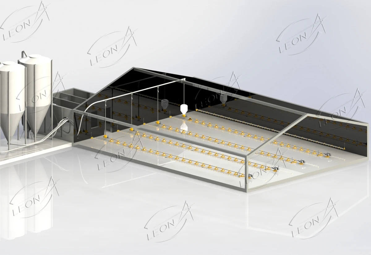 Напълно автоматична пълна подова система за отглеждане на бройлери