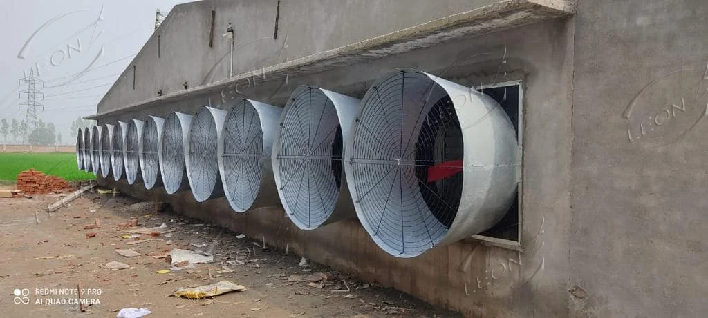Вентилационната вентилаторна система контролира вътрешната среда на птицефермата, осигурява чист въздух и подходяща влажноствашите пилета, като гарантирате, че вашите бройлери осигуряват
